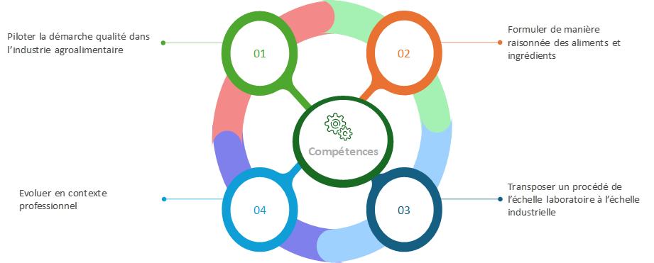 Former des cadres professionnels dans le domaine agroalimentaire, dotés d’une double compétence technologique et organisationnelle et capables de :